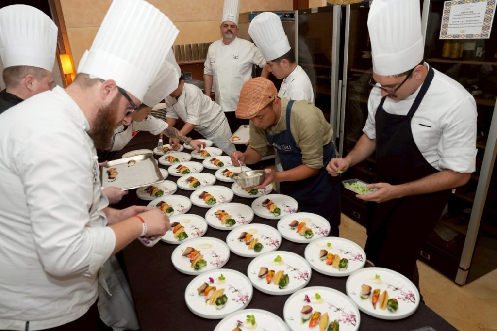 The event was hosted by the renowned local hotel “Sofitel Macau at Ponte 16” and offered a pairing experience in which a local sommelier selected wines to match the dishes from each city. Twenty-seven guests attended, and Usuki City served “Chadai-zushi,” a dish of local vegetables seasoned with vinegar made from Usuki-grown kabosu citrus and served with a house-made sauce. The dish was extremely well received by both guests and fellow chefs, allowing us to fully convey the appeal of Usuki’s traditional cuisine. For the final course, all six chefs collaborated on plating, which also helped deepen exchanges among them.
